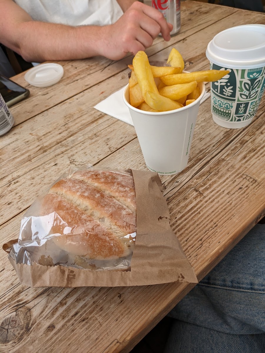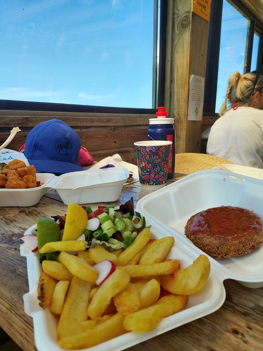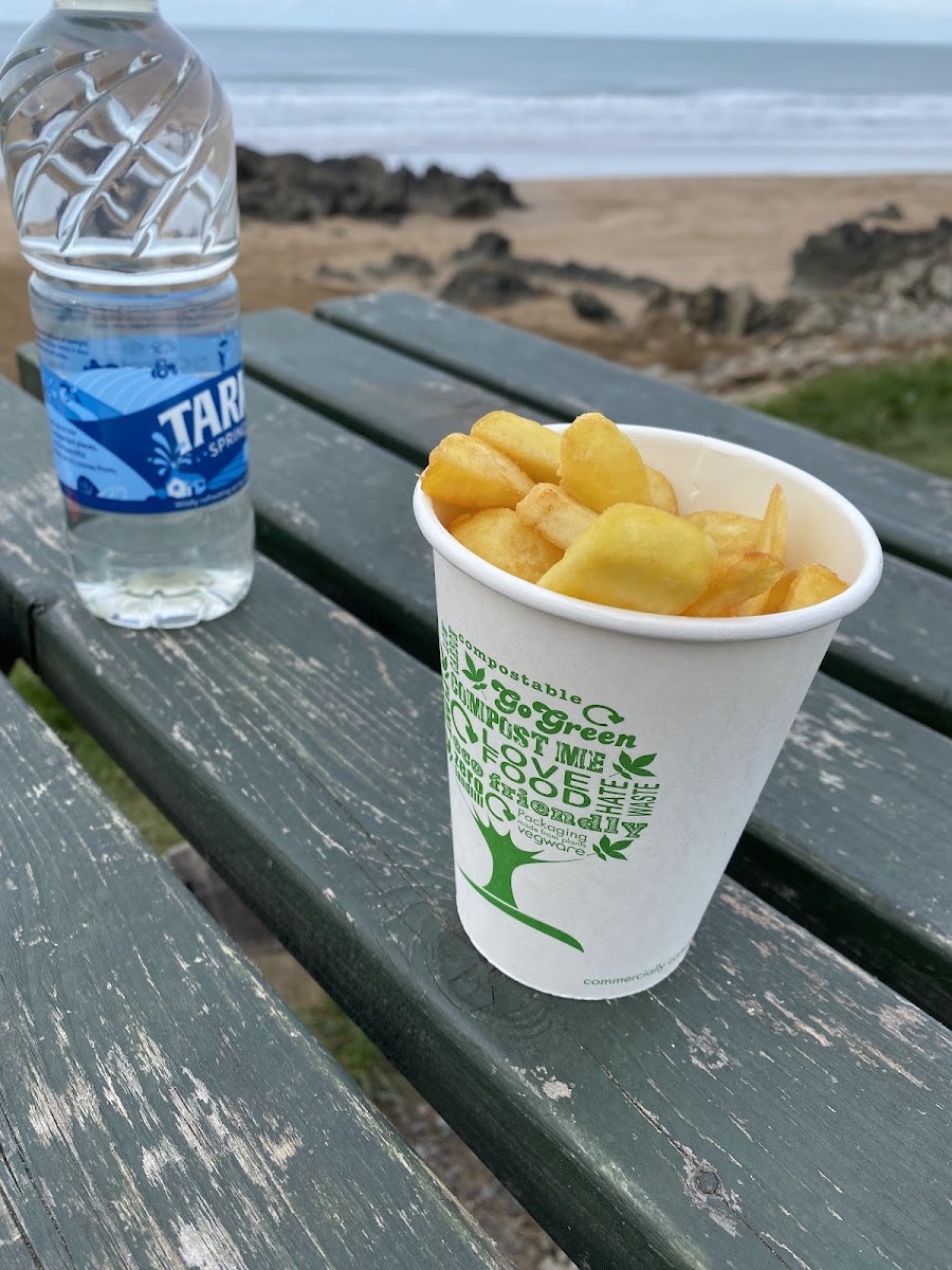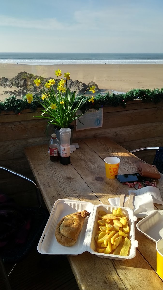 The menu is uncomplicated and comforting. You’ll find classic British beach-cafe staples like Cornish pasties with chips, chicken nuggets and chips, and simple breakfast baps. The “Cup of Chips” is a local favourite for a warm snack after chilly sea swims or long walks. Hot drinks range from flat whites to hot chocolate, and though prices lean a bit higher than inland cafes, many appreciate the freshly cooked food and friendly service.